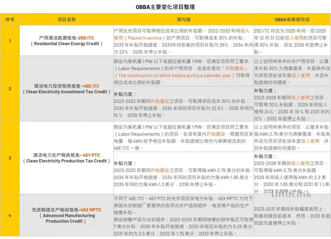 尽管OBBA草案尚待美国参议院审查,距离正式立法仍有不确定性,但其内容已足以对市场预期产生影响,本文将针对草案中与光伏相关之条文进行解析,并探讨其可能对美国光伏市场所带来的影响。